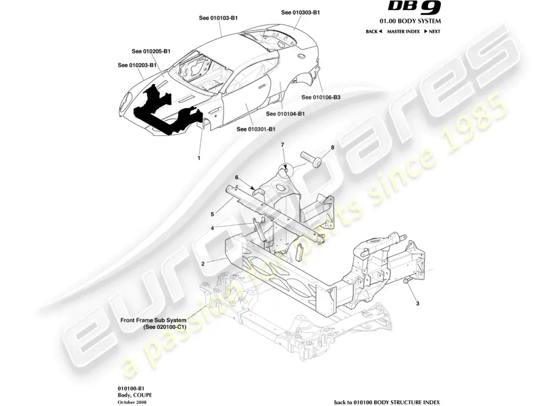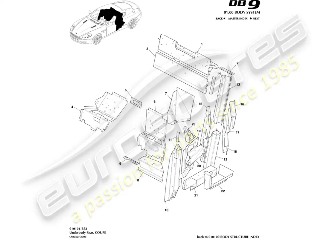 Aston Martin DB9 (2004) Body, Volante Diagrama de piezas
