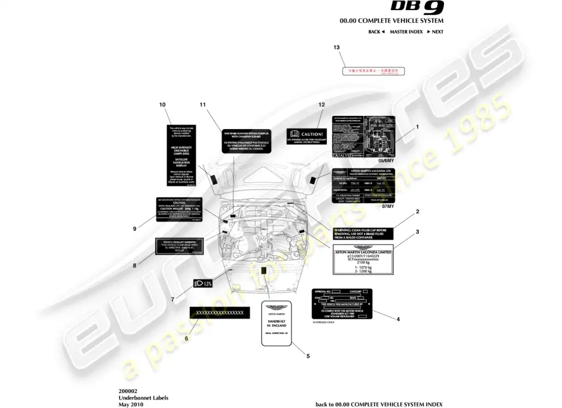 aston martin db9 (2004) módulo de presión de neumáticos diagrama de piezas