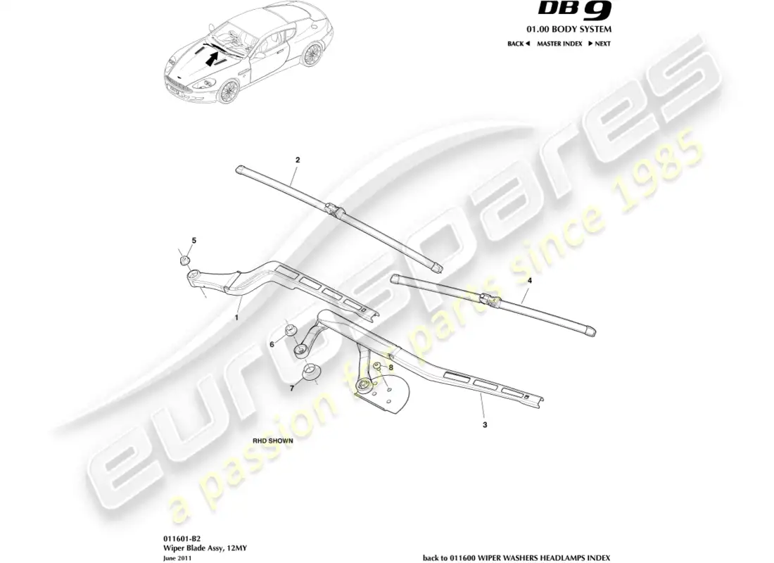 aston martin db9 (2005) sistema de cierre de lona diagrama de piezas