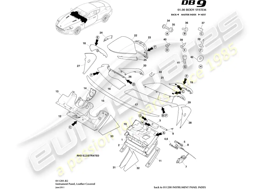 aston martin db9 (2006) subestructura ip diagrama de piezas
