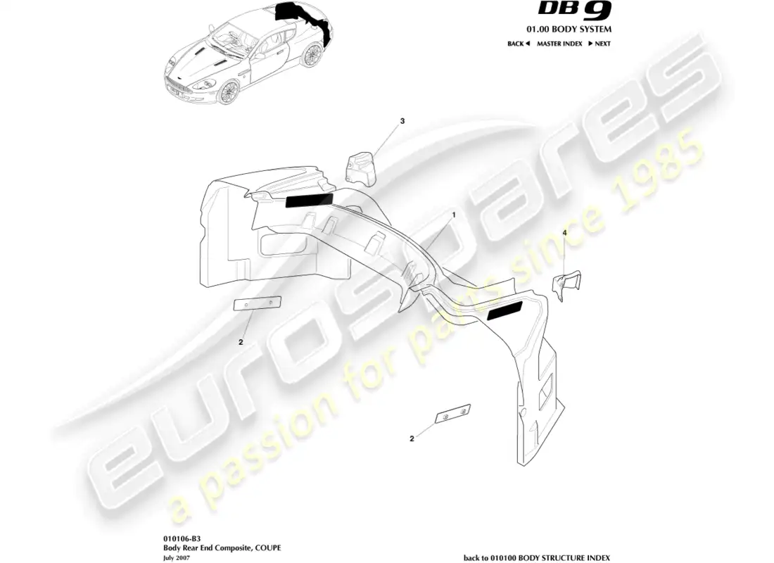 aston martin db9 (2008) escudos traseros debajo de la carrocería diagrama de piezas