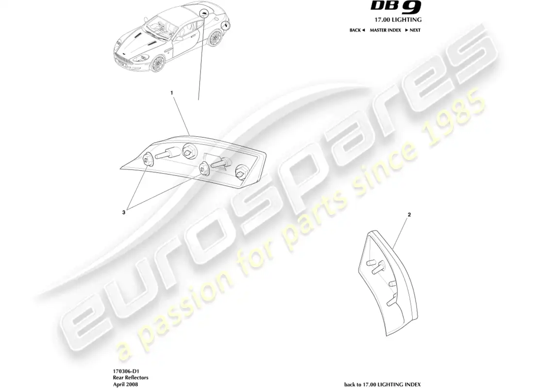 Aston Martin DB9 (2008) High Mounted Stop Light, Volante Diagrama de piezas