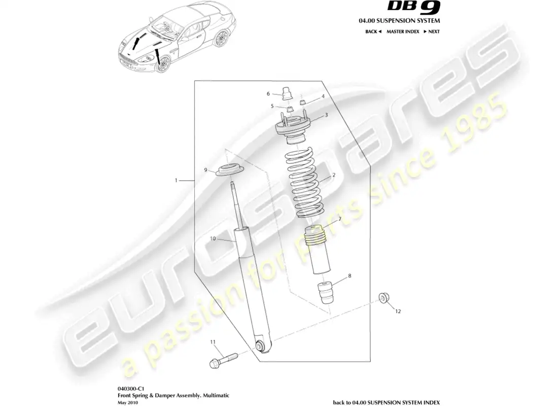 aston martin db9 (2009) barra estabilizadora trasera diagrama de piezas