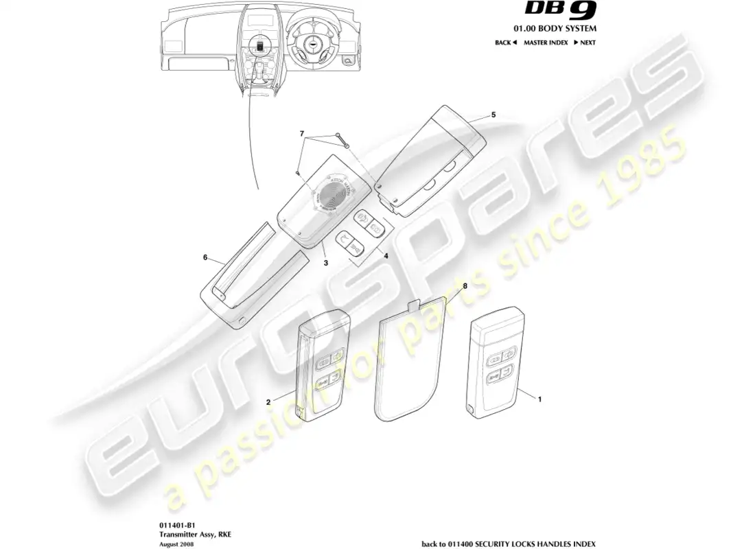 aston martin db9 (2012) módulo de inicio/parada diagrama de piezas