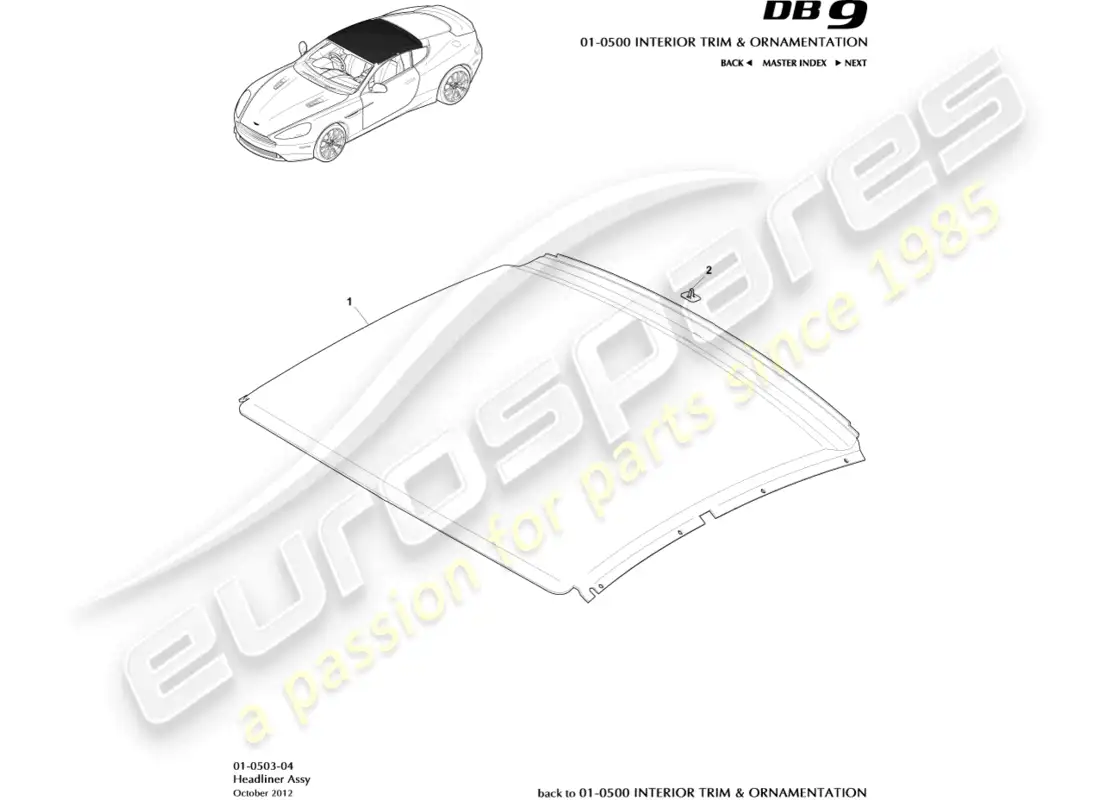 Aston Martin DB9 (2013) Headliner Assembly Diagrama de piezas