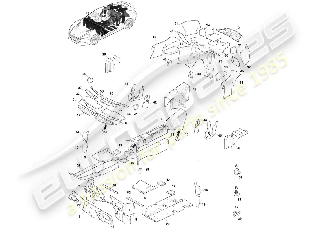 aston martin vanquish (2013) embellecedor del cabezal delantero, volante diagrama de piezas