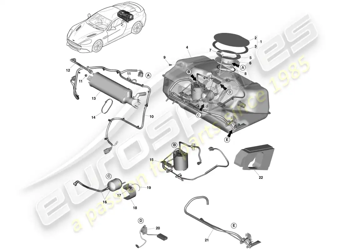 aston martin vanquish (2013) distribución de combustible, 15my en diagrama de piezas
