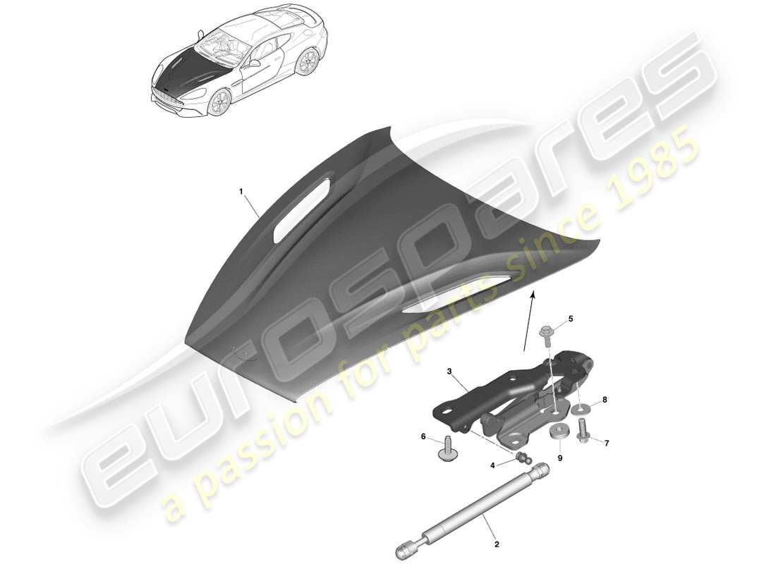 aston martin vanquish (2014) capó y bisagras diagrama de piezas