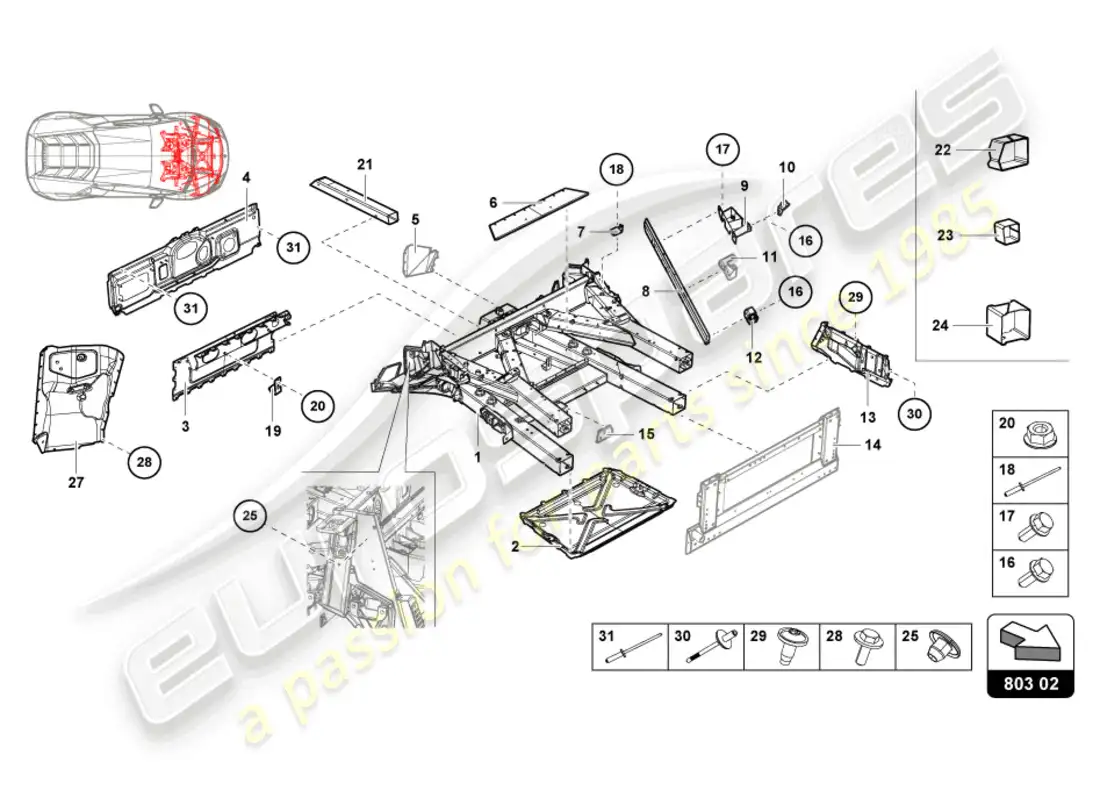 Lamborghini Evo Coupe (2021) FRONT FRAME Diagrama de piezas