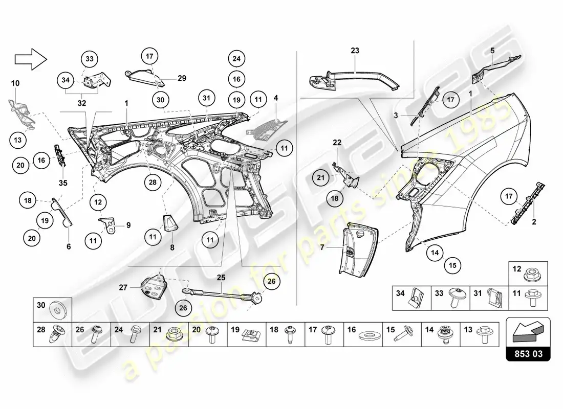 Lamborghini LP600-4 ZHONG COUPE (2015) MOLDINGS Diagrama de piezas