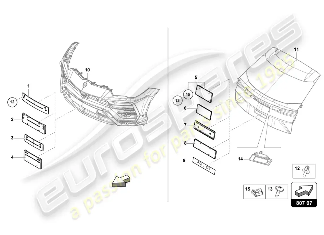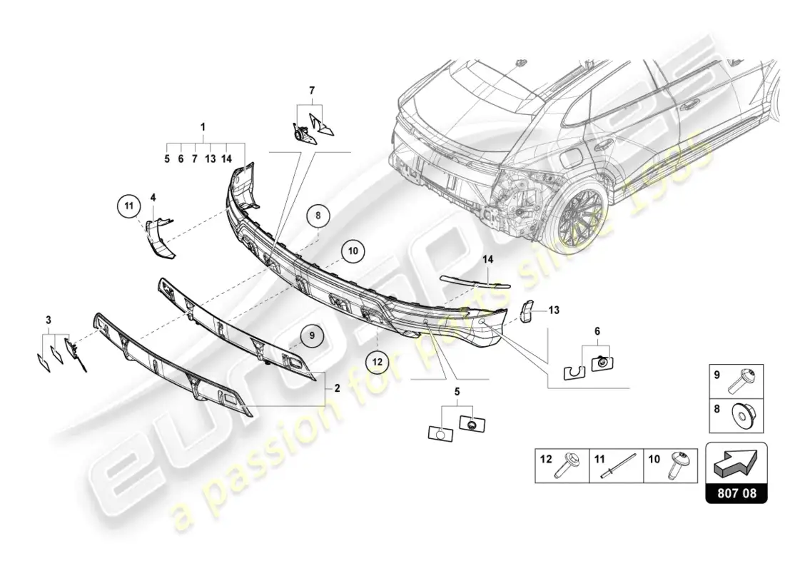 lamborghini urus (2021) panel lateral, lado interior diagrama de piezas