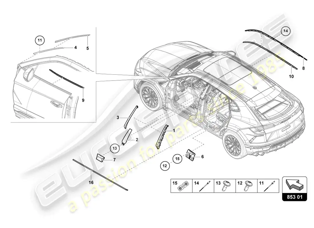 Lamborghini Urus (2021) WINDOW GLASSES Diagrama de piezas