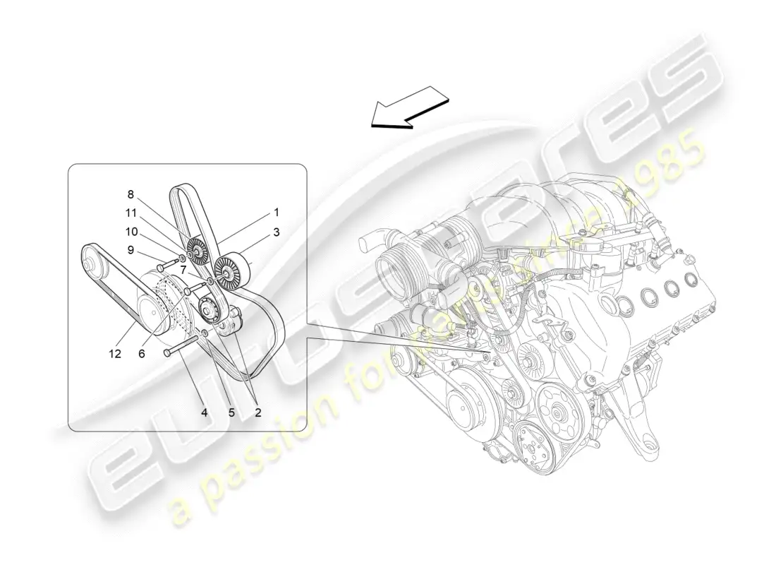 Maserati GRANTURISMO S (2018) AUXILIARY DEVICE BELTS Diagrama de piezas