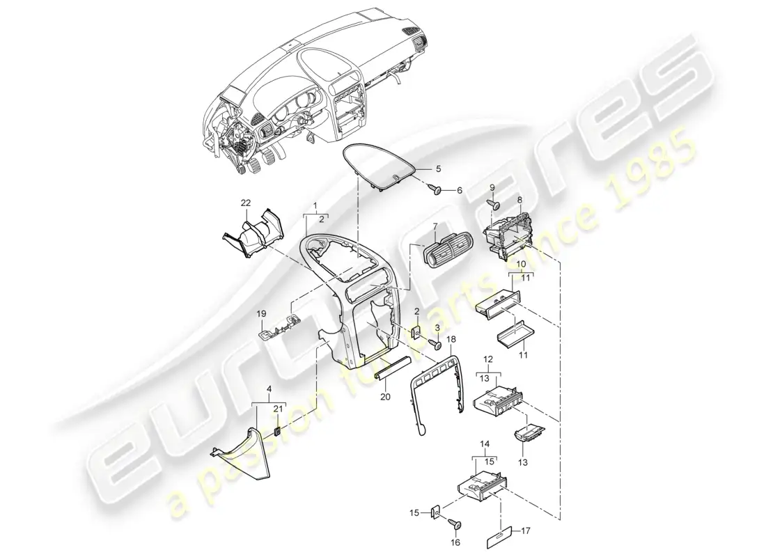 Características del número de pieza 95555223501 en algunos de los diagramas del catálogo de piezas de estas familias de modelos: Porsche Cayenne