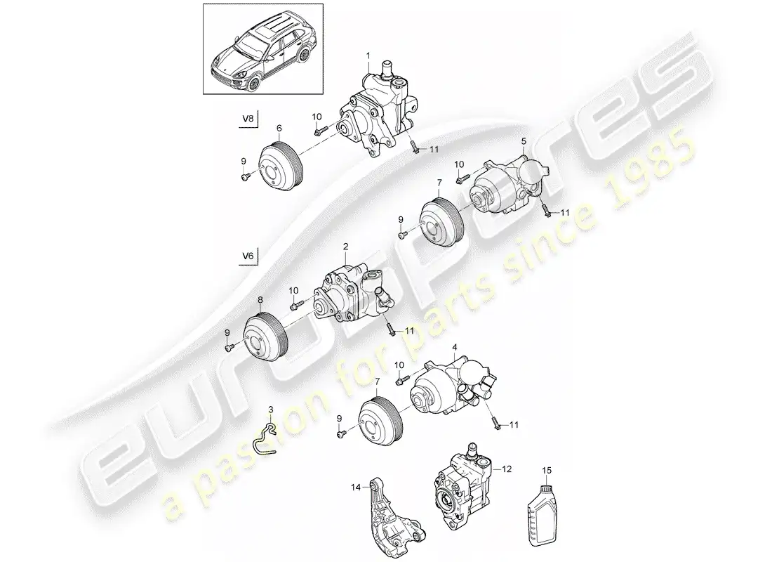Características del número de pieza 95831492600 en algunos de los diagramas del catálogo de piezas de estas familias de modelos: Porsche Cayenne
