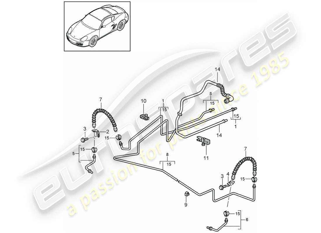 Características del número de pieza 98735557511 en algunos de los diagramas del catálogo de piezas de estas familias de modelos: Porsche Boxster y Porsche Cayman