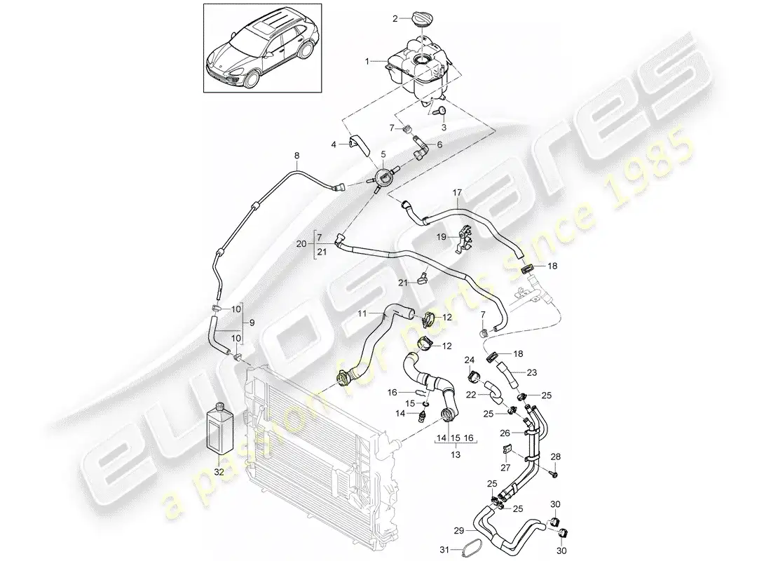 porsche 2013 (cayenne e2 92a) diagrama de piezas del sistema de enfriamiento del refrigerante