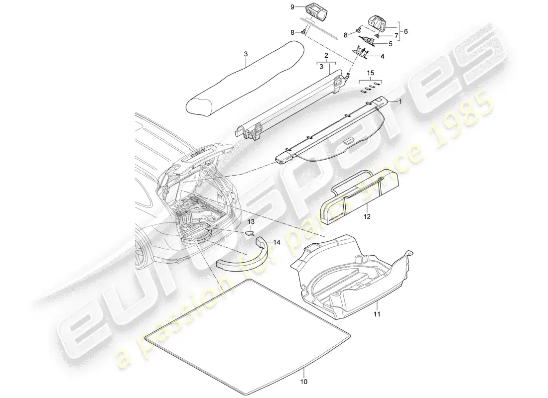 porsche 2013 (cayenne e2 92a) diagrama de piezas del botiquín de primeros auxilios con triángulo de advertencia de gato de herramienta