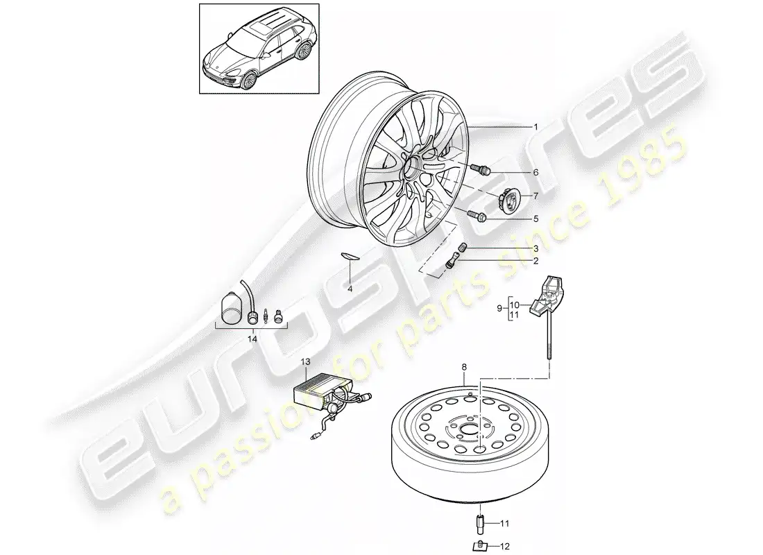 porsche 2013 (cayenne e2 92a) ruedas/neumáticos d - mj 2015>> diagrama de piezas
