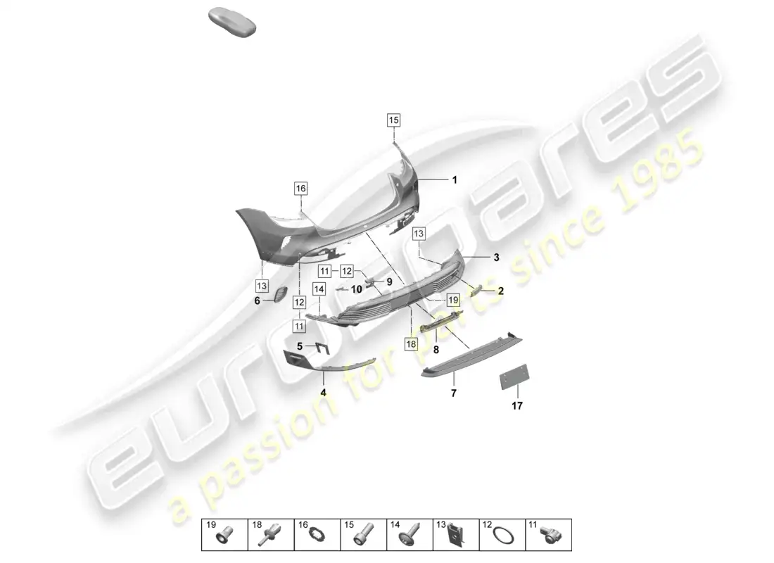 Porsche 2026 (Taycan 9J1-2) bumper rear Sport Design package Diagrama de piezas